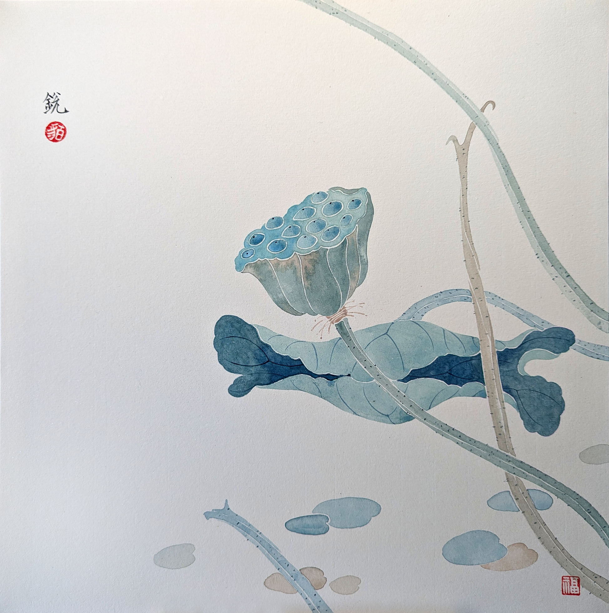 In Chinese painting, the lotus flower and lotus seedpod carry rich symbolic meanings related to purity, virtue, continuity of life and family prosperity. These meanings come from Chinese philosophy, poetry, and cultural traditions.